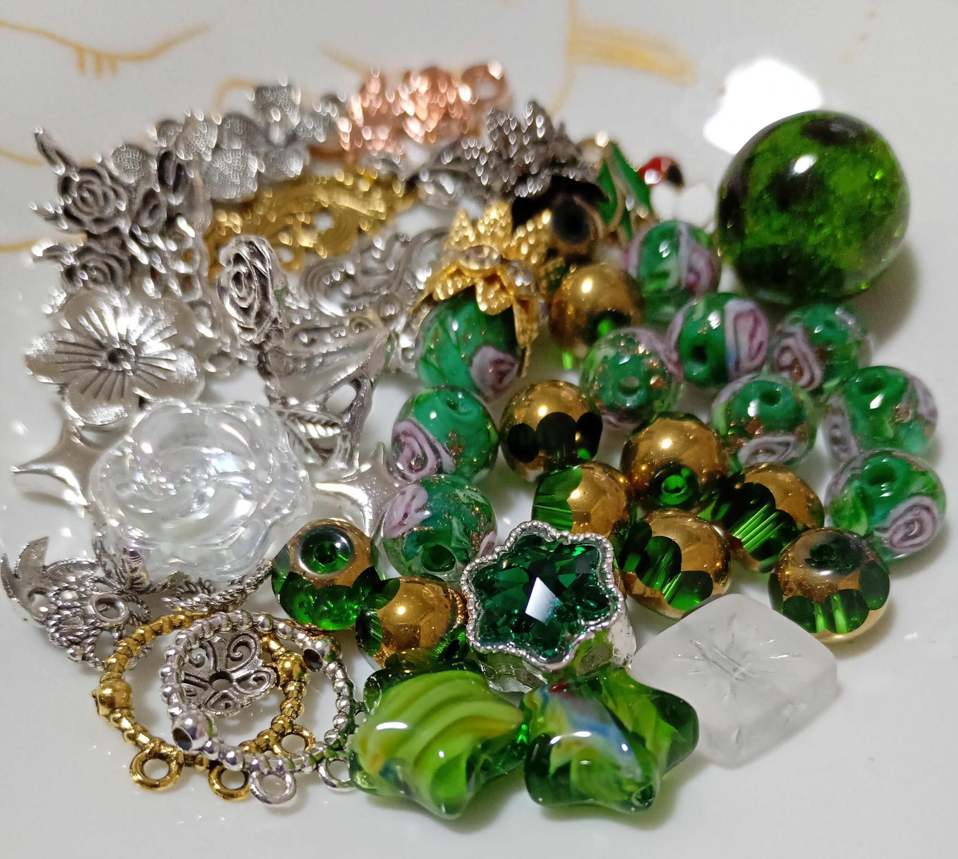ハイクオリティガラスビーズ&アクセサリーセット グリーン